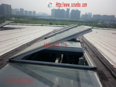 石室中學(xué)高新區(qū)天府校區(qū)(原玉林中學(xué)石羊校區(qū))2010年災(zāi)后重建項(xiàng)目,室內(nèi)體育館電動(dòng)采光排煙天窗150㎡,可開(kāi)啟扇32扇,專業(yè)防水天窗型材,鋁焊接組角,共計(jì)75㎡,5+0.76pvb+5mm鋼化夾膠白玻;采用齒條式RB-TC-550開(kāi)窗器,推力:800N,行程550mm,單臺(tái)開(kāi)窗器開(kāi)啟一扇天窗;控制方式為日常通風(fēng)控制、無(wú)線電遙控、消防聯(lián)動(dòng)自動(dòng)控制。